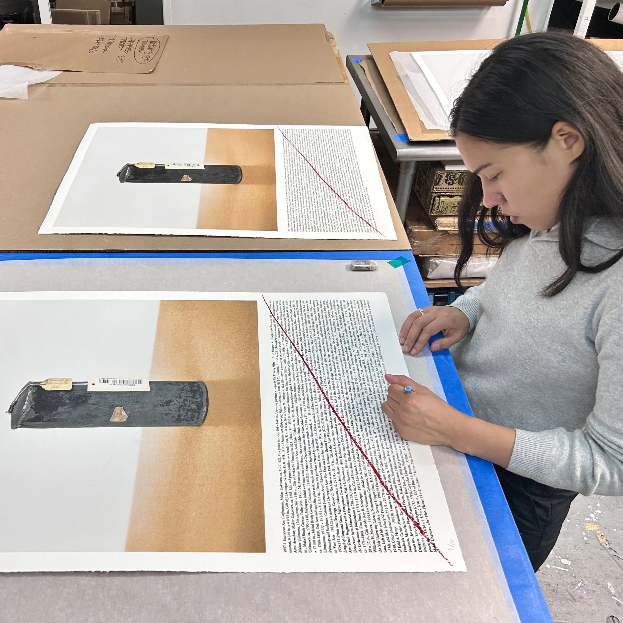 While this second iteration is screenprinted and hand pulled by Leslie Diuguid at Du-Good Press in Brooklyn, NY—the first version was made in the medium of lithography and produced in collaboration with Master Printer Doug Volle of Two Palms in April 2023.
