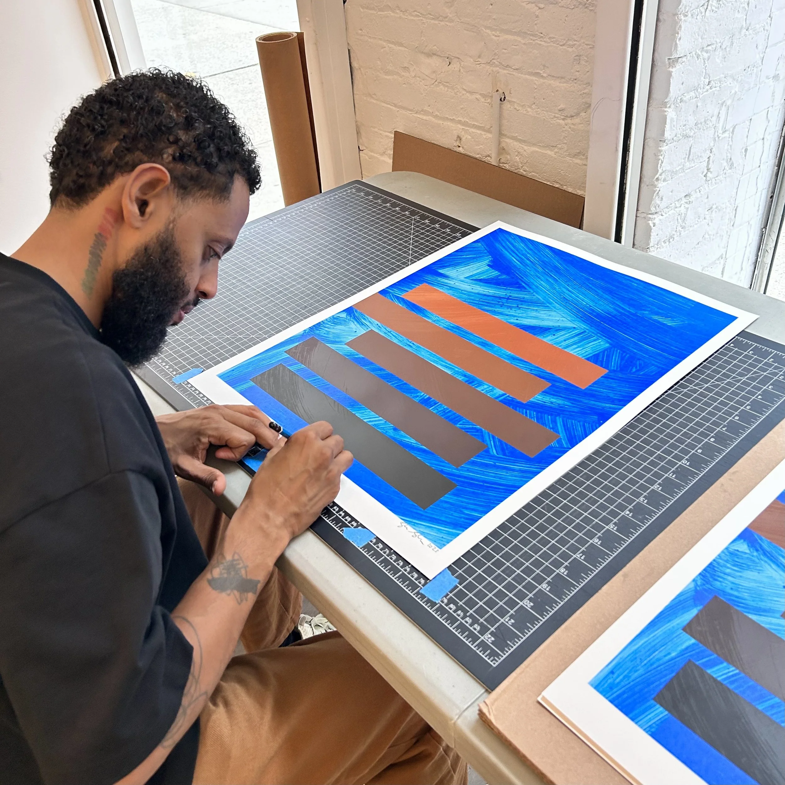 Tariku Shiferaw is a New York based artist who explores mark-making through painting and installation art, addressing issues around space-making within art and societal structures. Select museum exhibitions include The Culture: Hip Hop and Contemporary Art in the 21 st Century at Baltimore Museum of Art (2023); You’d Think By Now at Smack Mellon (2022); Men of Change, organized by The Smithsonian Institution, and held at the California African American Museum (CAAM), (2021); Unbound at the Zuckerman Museum of Art (ZMA), (2020); What’s Love Got to Do with It? at The Drawing Center (2019); A Poet*hical Wager at the Museum of Contemporary Art Cleveland (2017-2018); and the 2017 Whitney Biennial at the Whitney Museum of American Art, New York.